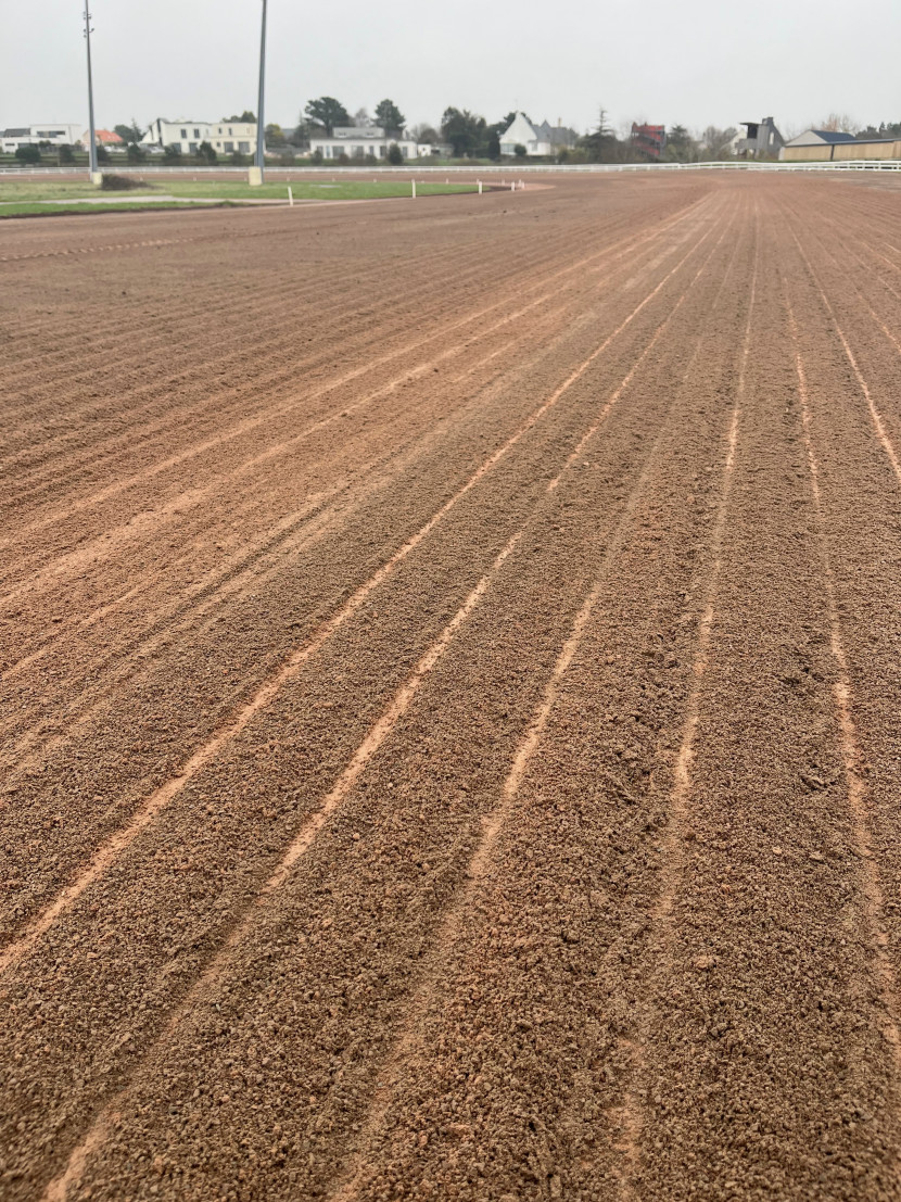 L’équipe technique de l’Hippodrome de Pornichet, épaulée par le spécialiste Blondeau Tracks Design, profite des quelques mois avant son meeting de trot pour renouveler la piste.